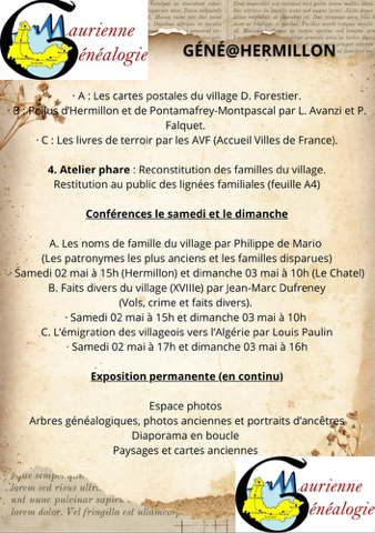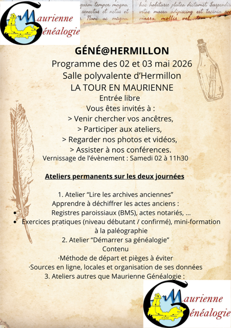 Maurienne Généalogie propose des expositions , conférences à la salle Leopold Durbet les 02 et 03 mai 2026